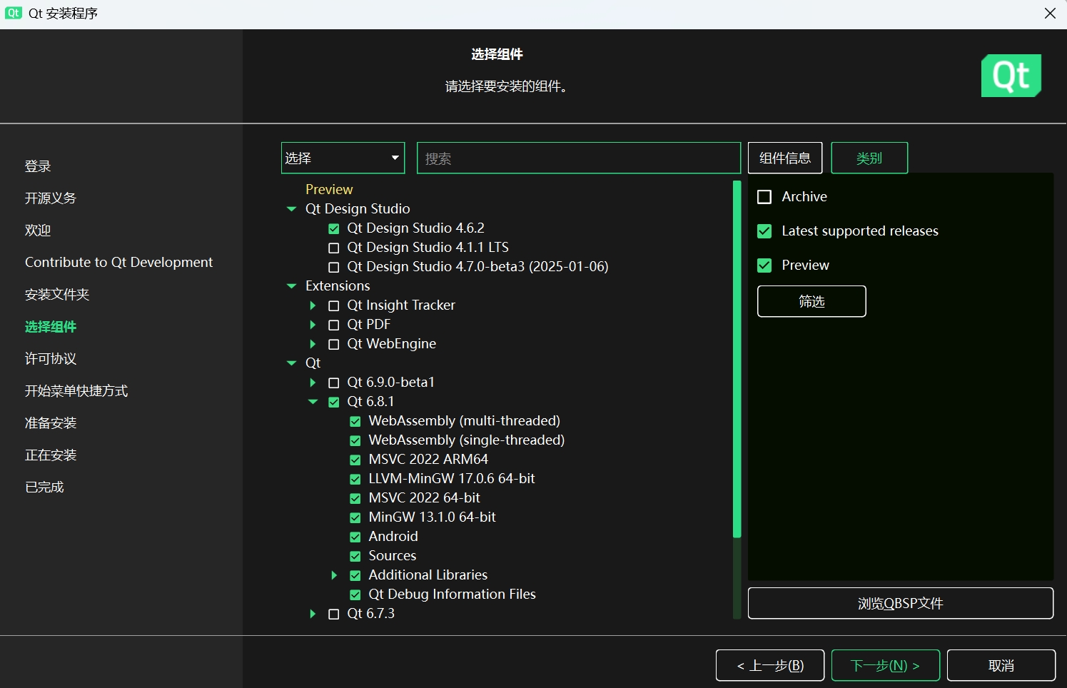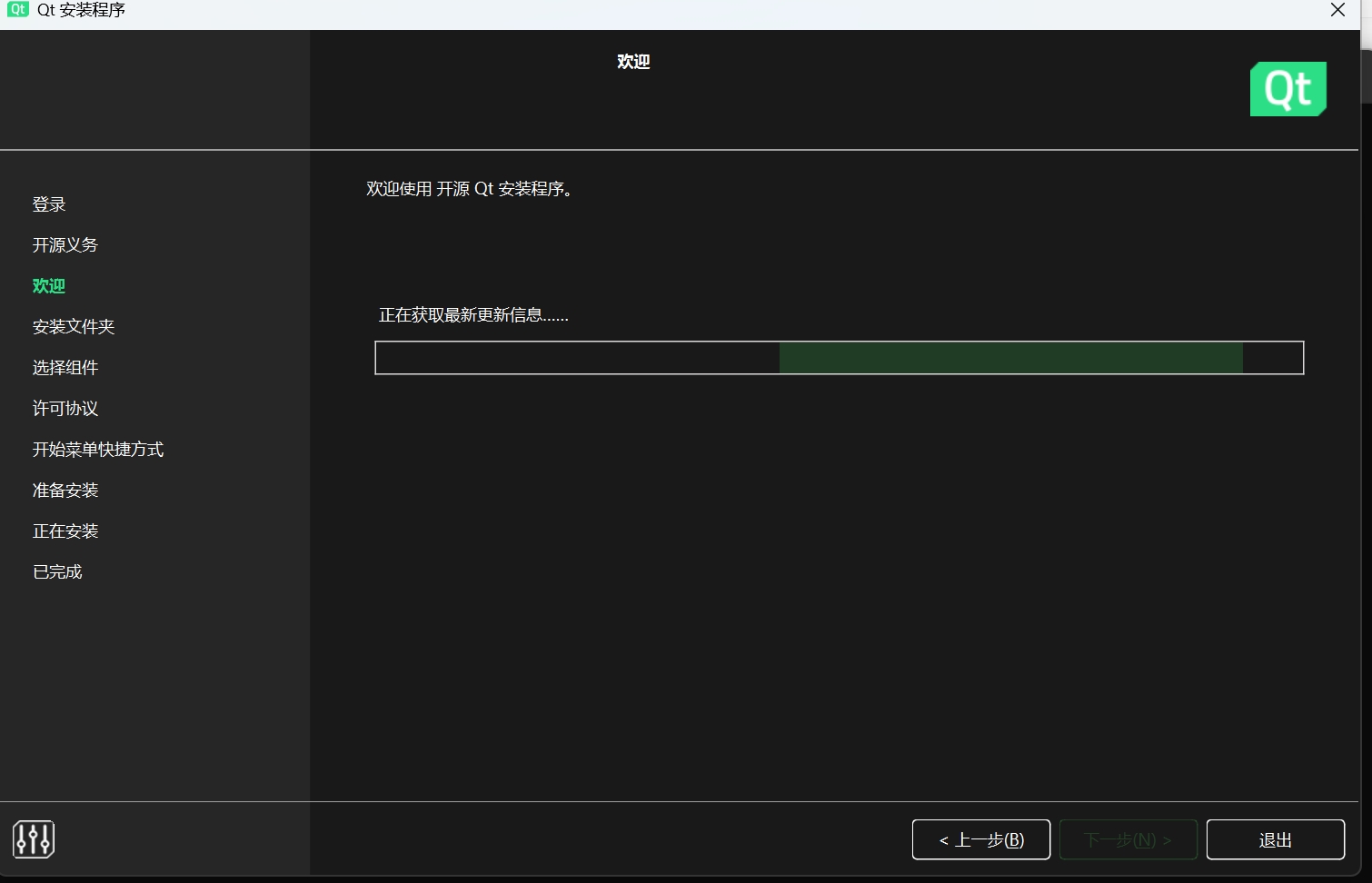 开始安装,输入自己的qt账号,进入qt在线安装界面